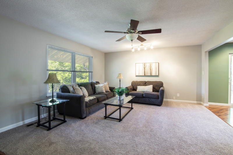 Perfect starter home for a young family. New neighborhood located near an elementary school. Open floor plan with custom features that will delight anyone. Kitchen/dining area looks out onto custom covered deck. Newly refinished hardwood floors in kitchen and plush carpeting throughout bedrooms. Stainless steel appliances and air conditioning.